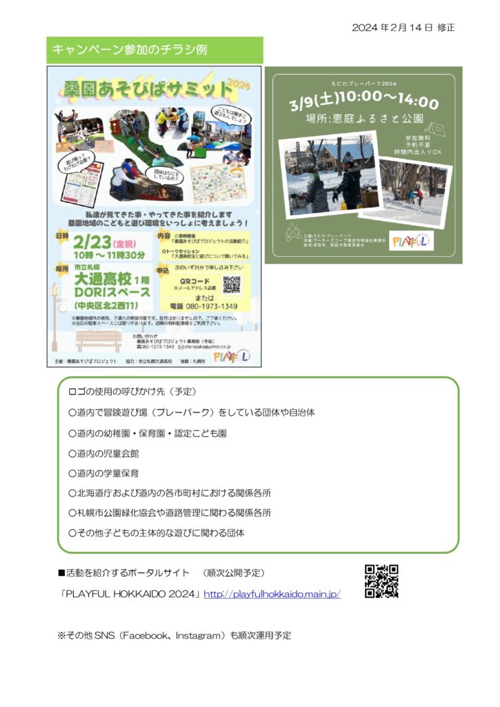 PLAYFUL HOKKAIDO 2024(プレイフル北海道2024)は、北海道内の子どもの主体的な遊びやその環境づくりを応援するキャンペーンです。